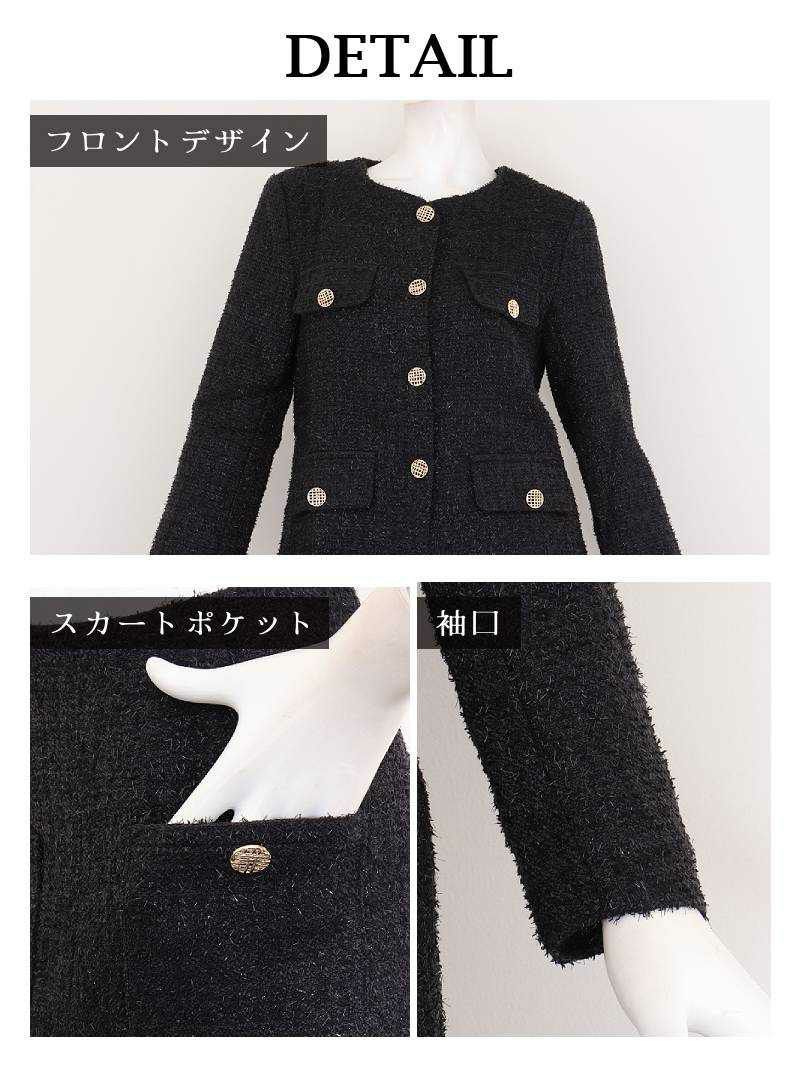 6. 先行予約割¥13800→¥13109!※一部予約販売※ゴールドボタンノーカラーツイードセットアップスーツ 加賀美早紀 着用 キャバスーツ【Belsia】(S/M/L/XL(2L))(ブラック(S/M/XL/3月下旬)/オフホワイト(S/M/3月下旬))