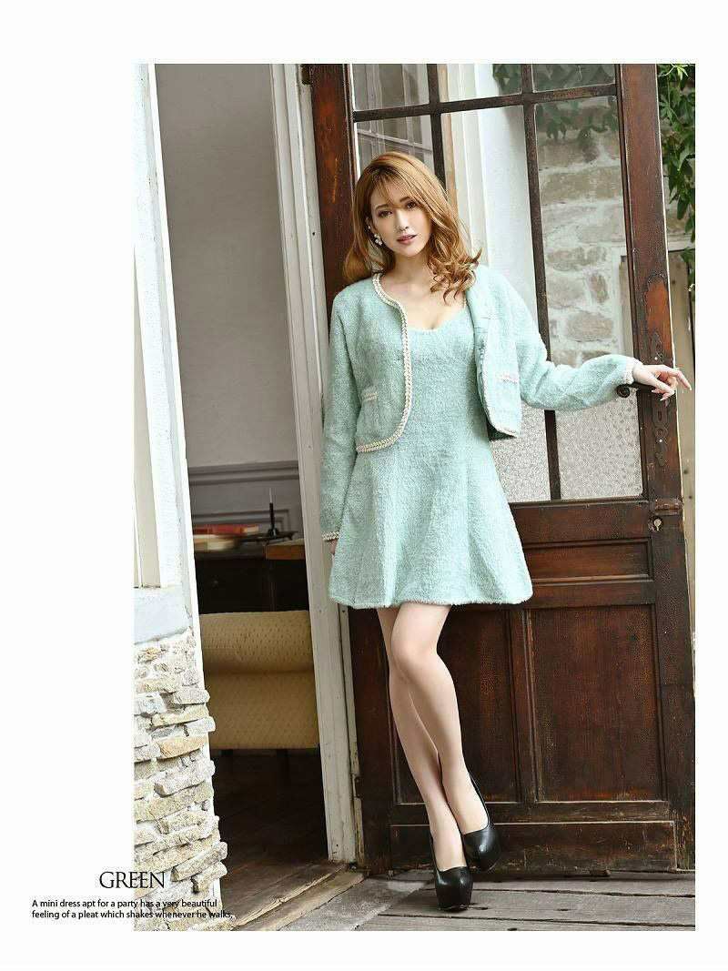 卒業式・入園式・入学式にも! スーパーSALE¥7980→¥5585! ショートモヘア風ミニ丈ワンピーススーツ 加賀美早紀 着用【Belsia】(M/L)(ホワイト/ピンク/グリーン)