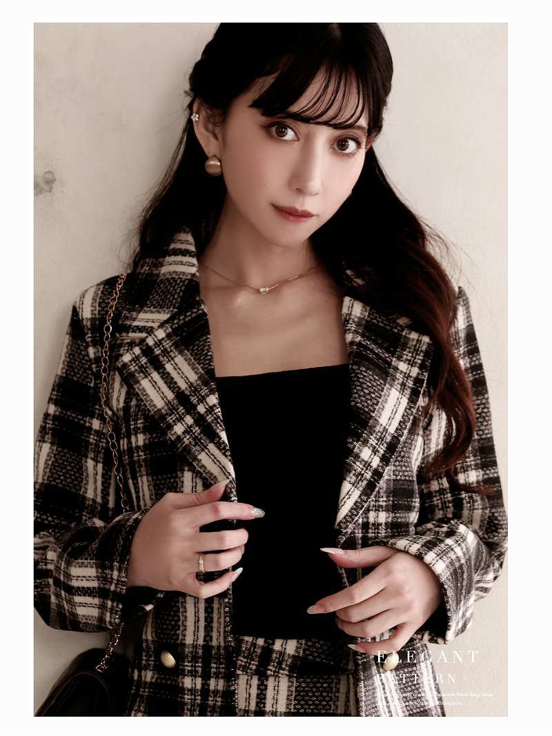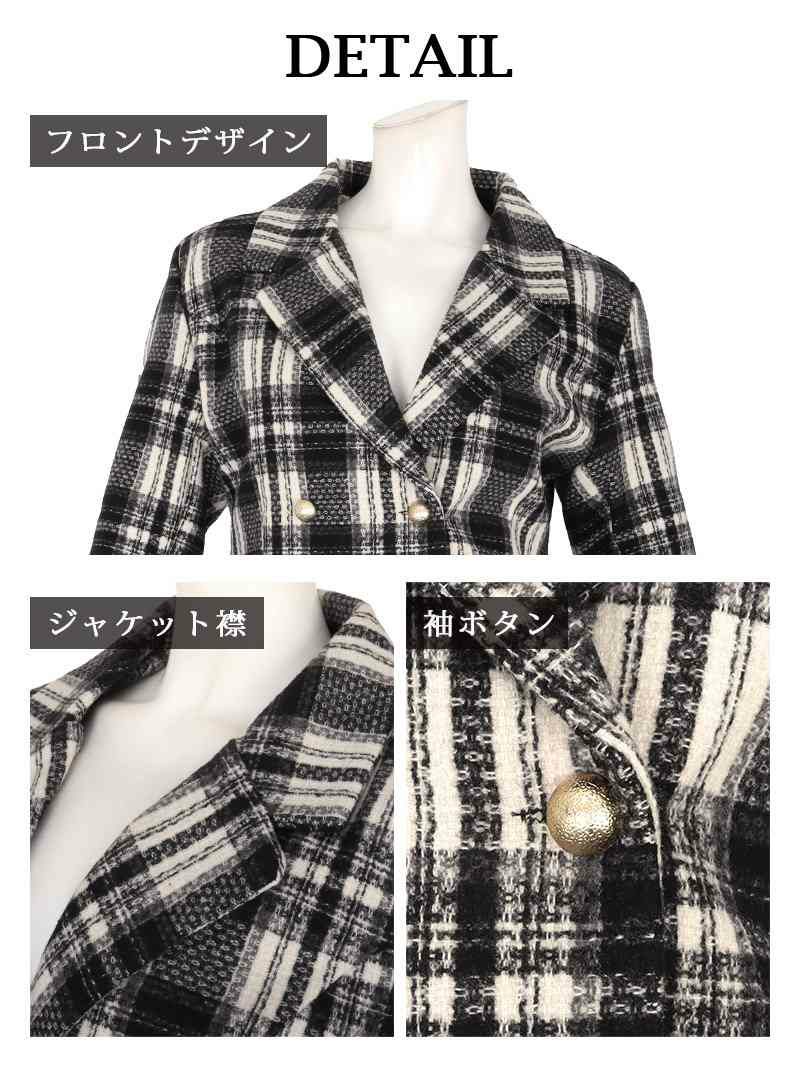 上品で甘すぎない大人ガーリーなレディーススーツ 千鳥柄ペプラムミックスツイードレディーススーツ 加賀美早紀 着用 キャバスーツ【BelsiaLUX】(S/M/L)(ブラック)