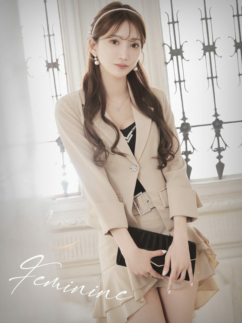 ジップスタイルで涼しめに完成 セレブシフォンzip半袖キャバスーツ/2Pセットアップ/フォーマルにもok【Belsia】