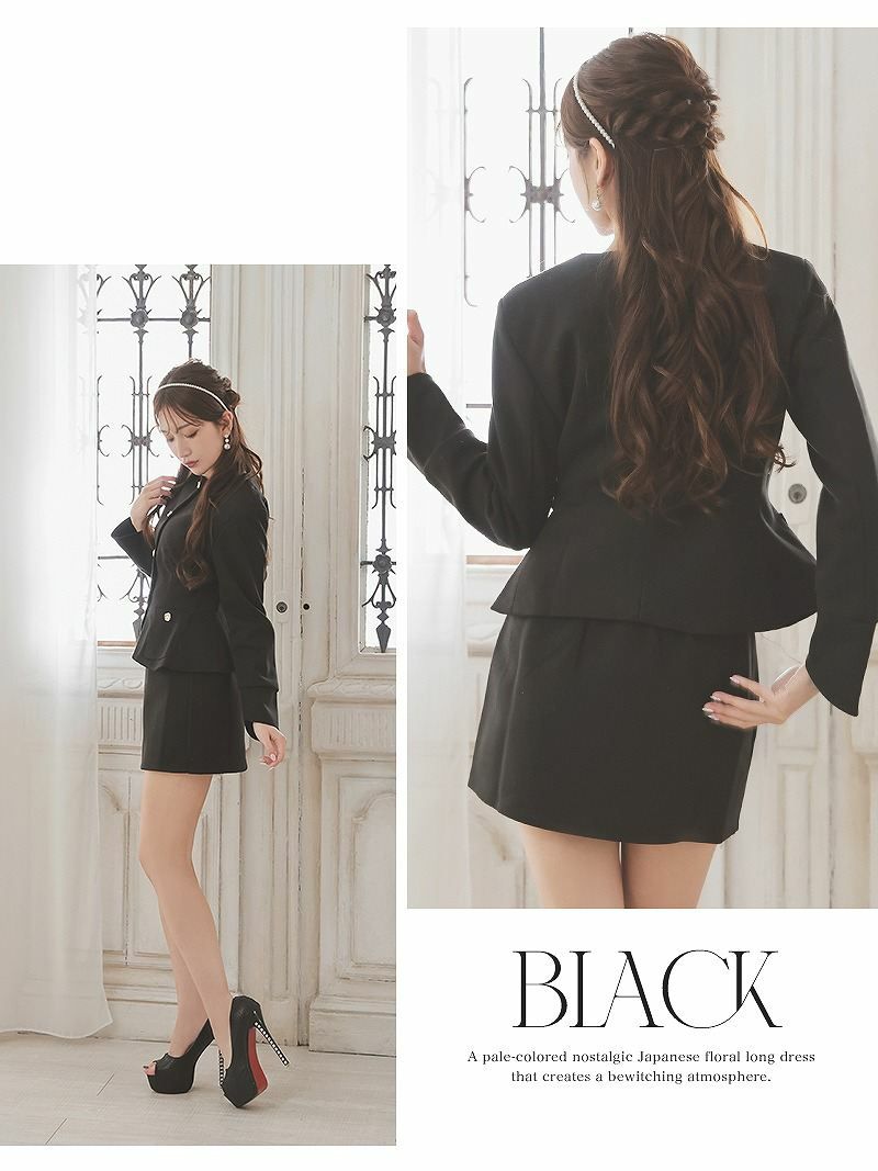 ふんわりシルエットで女の子らしいキャバスーツ パフスリーブミニフレアスカートキャバスーツ ゆずは 着用 レディーススーツ【Ryuyu】(S/M/L)(ブラック)