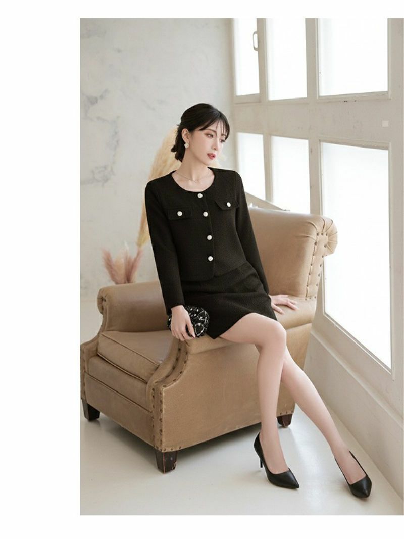 クールな色気を纏う、ボタンデザインがアクセントのブラックセットアップ。 飾りボタン付きタイトワンピース&ショート丈ジャケットセットアップキャバスーツ 【Ryuyu】(S/M/L/XL(2L))(ブラック)
