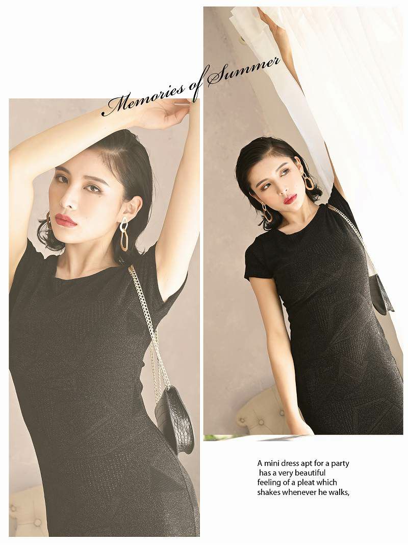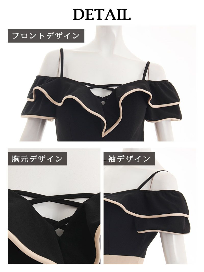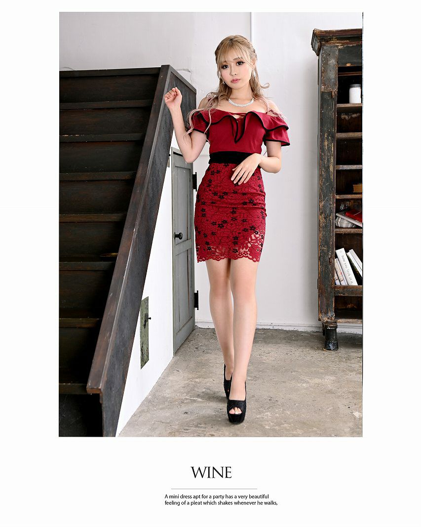 上品な肌魅せでみんなを魅了 ブラック総レースウエストリボンオフショルミニドレス 加賀美早紀 着用キャバクラドレス【Belsia】(S/M/L)(ブラック/ホワイト)