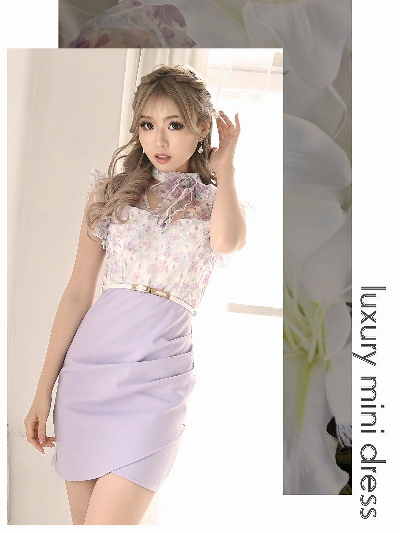 エレガントなフリルスタイル キャバスーツフリルEleganceなフェイクインナー付きコルクlineキャバスーツ【Belsia】