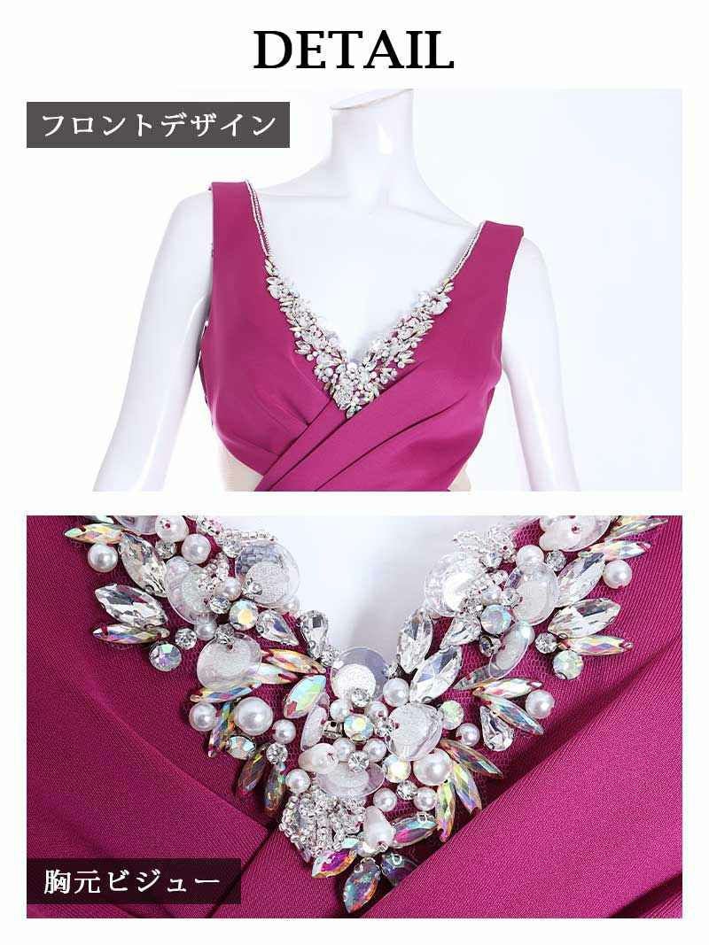 バストにあしらわれた煌びやかなビジューが高級感溢れ華やかな雰囲気を醸し出すキャバドレスです。
