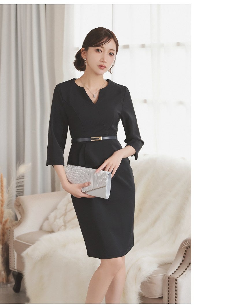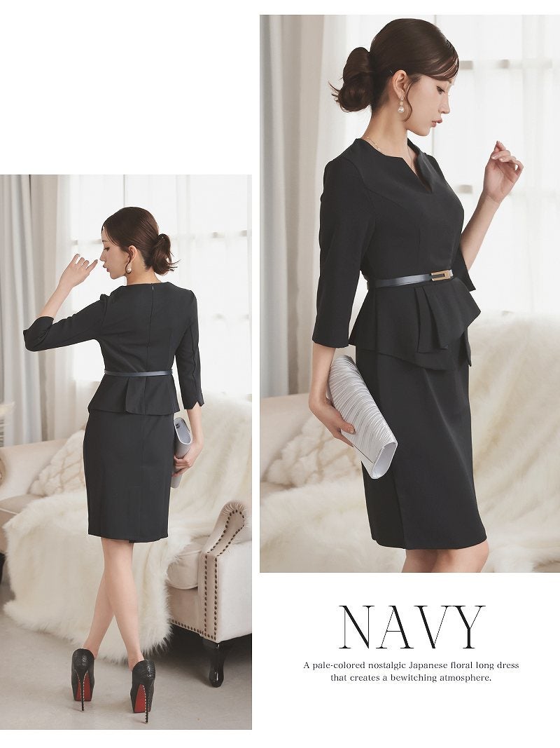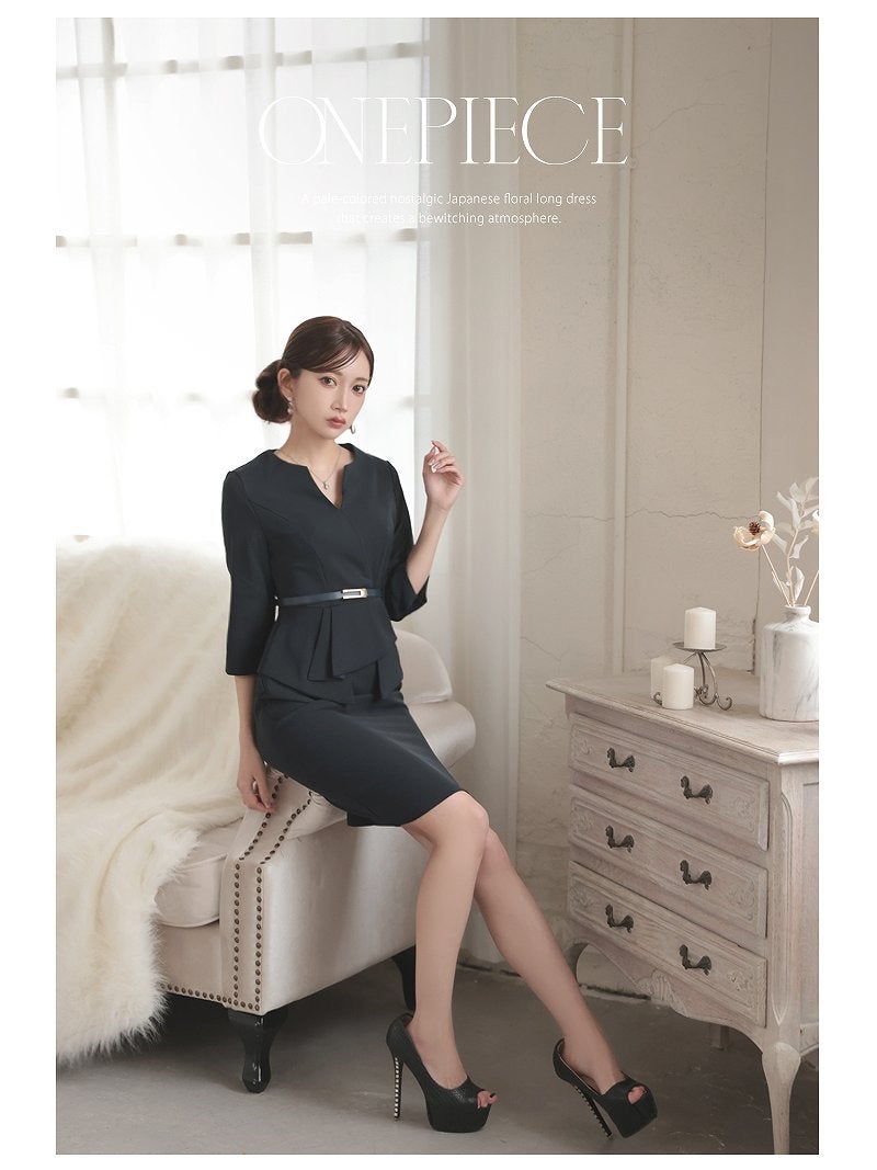 上品なネイビーと韓国風シルエットで、洗練された大人な魅力を放つベルト付きカシュクールワンピース。 先行予約割¥7680→¥7295!※一部予約販売※カシュクール七分袖ストレッチ韓国風キャバワンピース ベルト付き KANO 着用 キャバワンピース【DaysPiece】(S/M/L/XL(2L)/XXL(3L))(ブラック/ネイビー/ワイン)