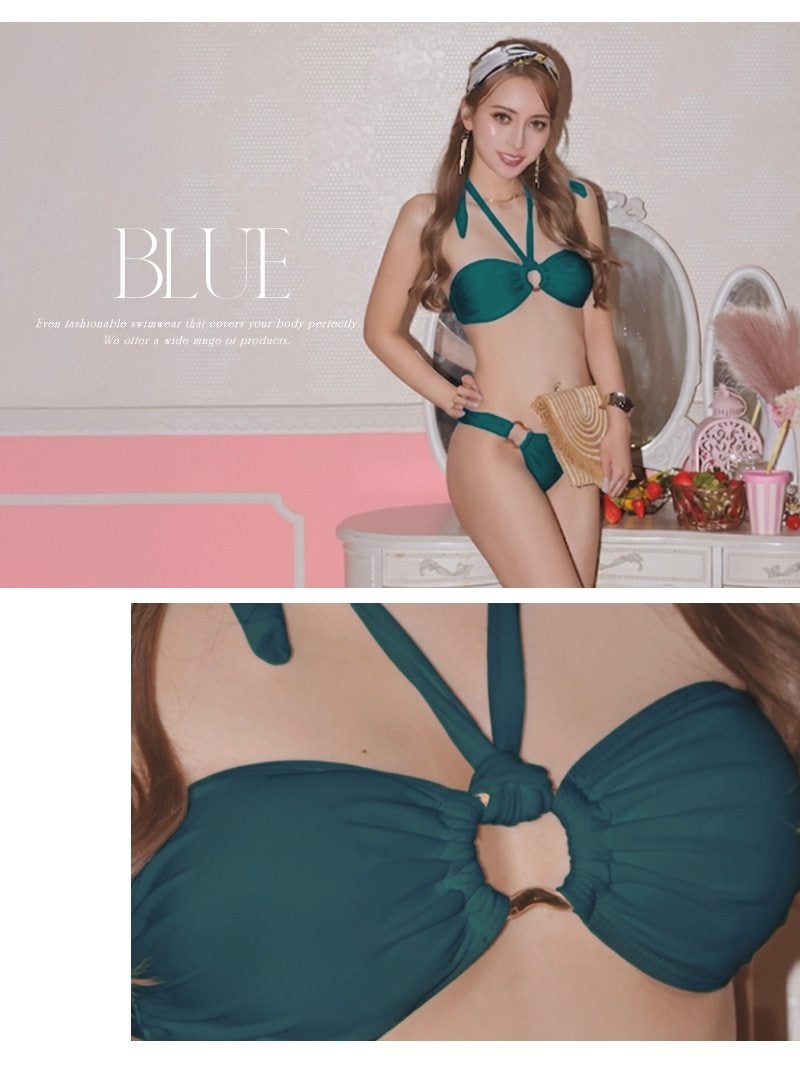 ゴールドバックルが煌めく洗練された大人のハイレグバンドゥビキニ。 ゴールドバックルが輝くセクシーなバンドゥホルタービキニで大人のリゾートスタイルを叶えるセパレート水着 【Ryuyu】(M)(ホワイト/グリーン/ブルー/ブラック)