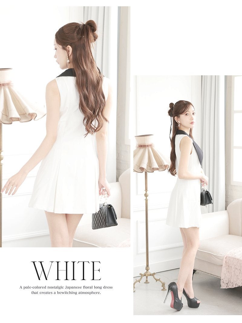 トリコロールのアクセントが目を引く、知的な韓国スタイルの上品膝丈ワンピース。 先行予約割¥7980→¥7581!※一部予約販売※韓国風の洗練されたシルエットが美しいトリコロール大人膝丈ワンピース KANO 着用 キャバワンピース【DaysPiece】(S/M/L/XL(2L))(ネイビー)
