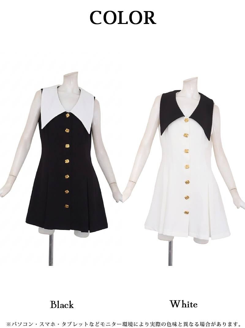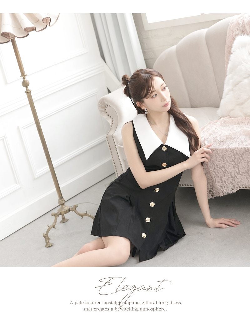 清楚なシフォン袖とバイカラーが大人可愛い、韓国風シルエットの膝丈ワンピース。 先行予約割¥8680→¥8245!※一部予約販売※清楚なシフォン袖が大人可愛いバイカラーの韓国風膝丈ワンピース KANO 着用 キャバワンピース【DaysPiece】(S/M/L/XL(2L))(ブラック)