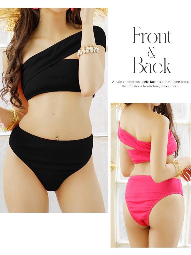 洗練されたワンショルダーデザインとハイウエストで周囲と差がつくビーチスタイルに。 リゾートへ行こうSALE¥3280→¥2623! トレンドのワンショルダーとリブ素材が目を惹くハイウエストバンドゥビキニ 【Ryuyu】(S/M/L)(ホワイト/ネオンイエロー/ピンク/イエロー/オレンジ/ブラック)