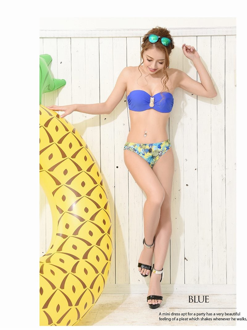 パイナップルチャームと南国柄で視線を独占する、圧倒的に盛れる2WAYビキニ! リゾートへ行こうSALE¥4780→¥3823! 鮮やかなピンクにパイナップルチャームが映える南国感たっぷりの2WAYバンドゥビキニ【Ryuyu】(S/M)(ピンク/ブルー)
