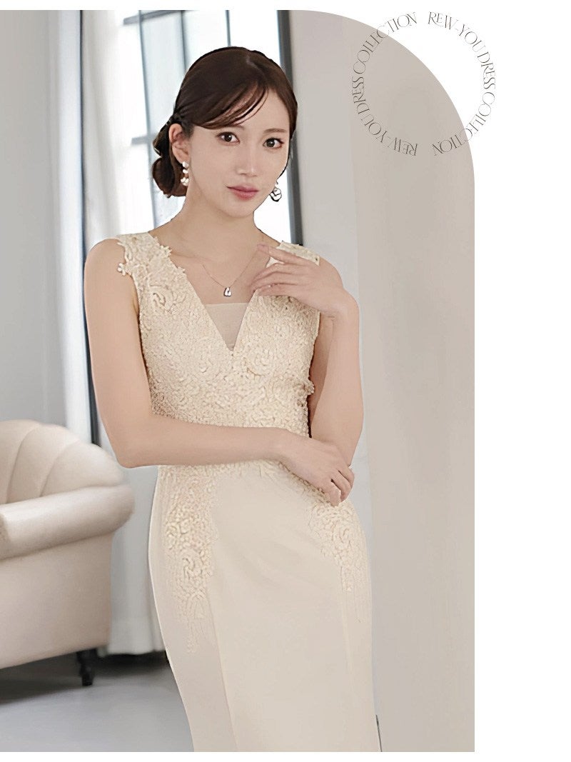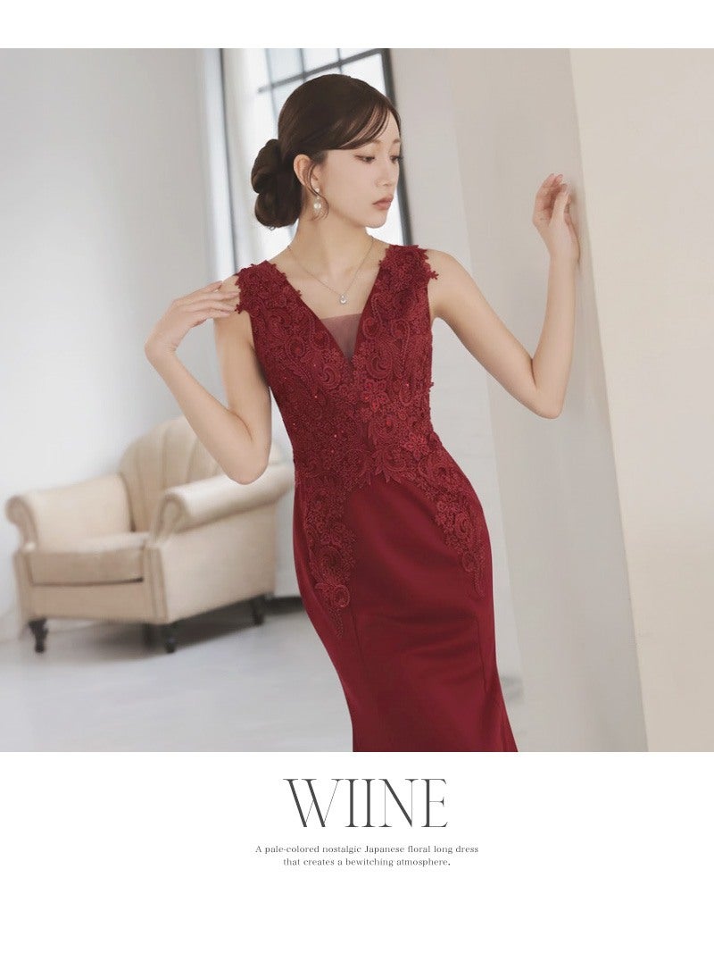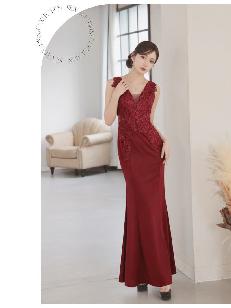 立体刺繍とスレンダーなシルエットで周囲を魅了するエレガントな一枚。 先行予約割¥7980→¥7581!※一部予約販売※立体刺繍とビジュー付きの高級感あふれるタイトなスレンダーロングドレス 【Ryuyu】(S/M/L/XL(2L))(グリーン/ブラック/オフホワイト/ワイン)