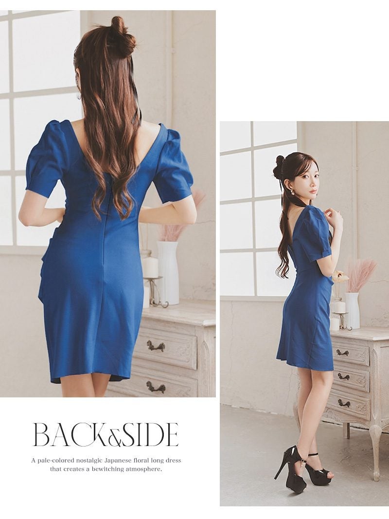 サイドギャザーとパフ袖で、理想の美シルエットと体型カバーを両立した上品ドレス! 先行予約割¥6980→¥6630!※一部予約販売※サイドギャザーで細見えを叶える、パフ袖が可愛い上質なストレッチキャバドレス 【Ryuyu】(S/M/L)(ブルー/ブラック/グリーン/ホワイト)