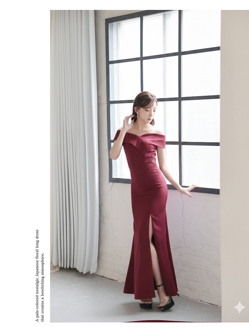 大胆なスリットと美デコルテで周囲の視線を釘付けにする、気品溢れるマーメイドロングドレス。 先行予約割¥7980→¥7581!※一部予約販売※美デコルテオフショルダースリット入りマーメイドロングドレス キャバドレス 【Ryuyu】(S/M/L/XL(2L)/XXL(3L))(ホワイト/ワイン/ブルー/ブラック)