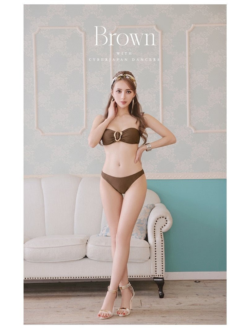 パレオ付きの3点セットで、大人の余裕を感じさせる洗練されたビーチスタイルを楽しんで。 水着 落ち着いたブラウンのアースカラーが色っぽいパレオ付きバンドゥセパレート水着3点セット 【Ryuyu】(S/M)(ブラウン)