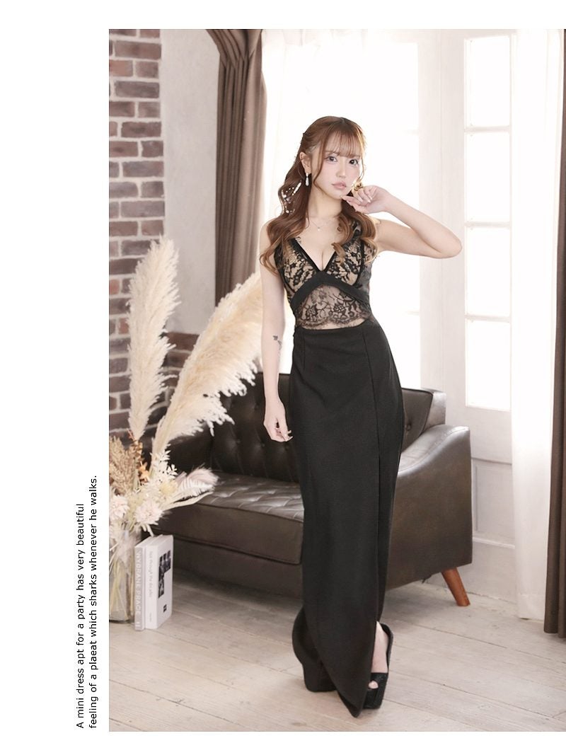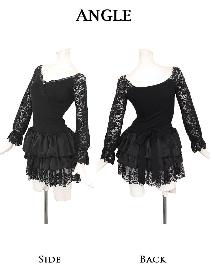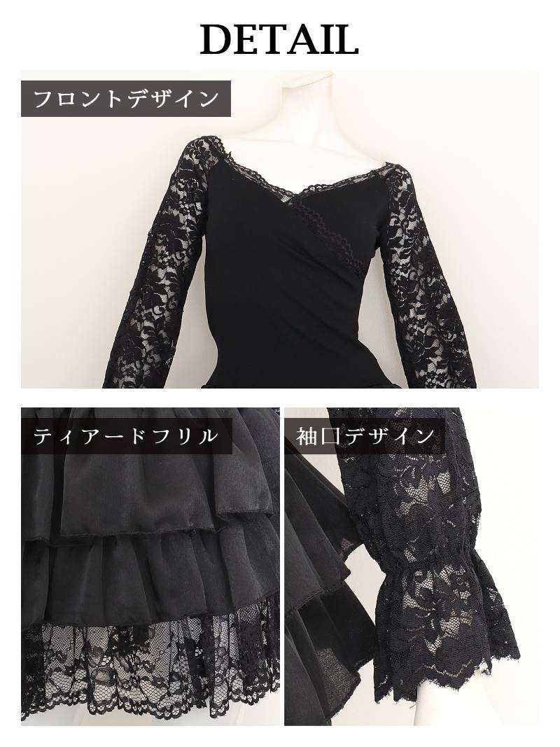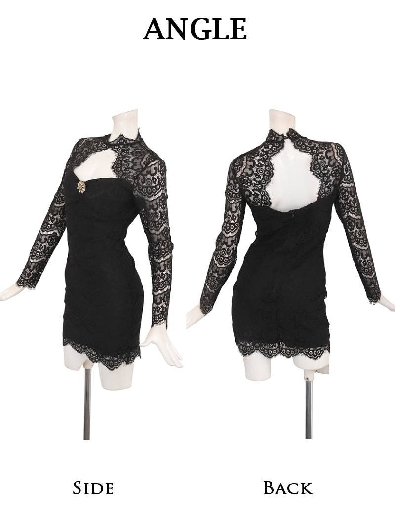 繊細なレースの透け感とメリハリシルエットで視線を釘付けにする色っぽタイトミニ! 先行予約割¥4980→¥4731!※一部予約販売※アイラッシュレースの透け感と美デコルテがセクシーに映える長袖タイトミニドレス りせり 着用 キャバドレス【RyuyuChick】(S/M/L/XL(2L))(ブラック)