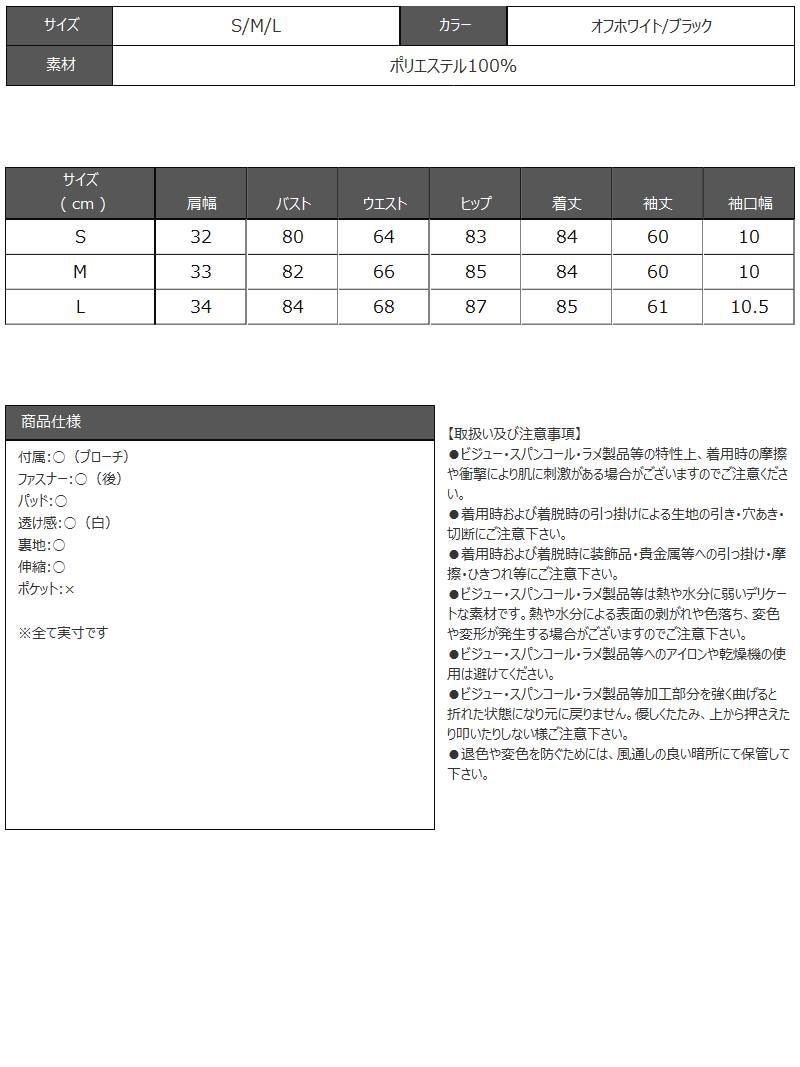 透け感あるレース袖と胸元のブローチが上品に輝く、大人の総レースミニドレス。 先行予約割¥4280→¥4065!※一部予約販売※フロッキーレースが上品な透け感あるレース袖付きの総レースミニドレス【RyuyuChick】(S/M/L)(オフホワイト/ブラック)