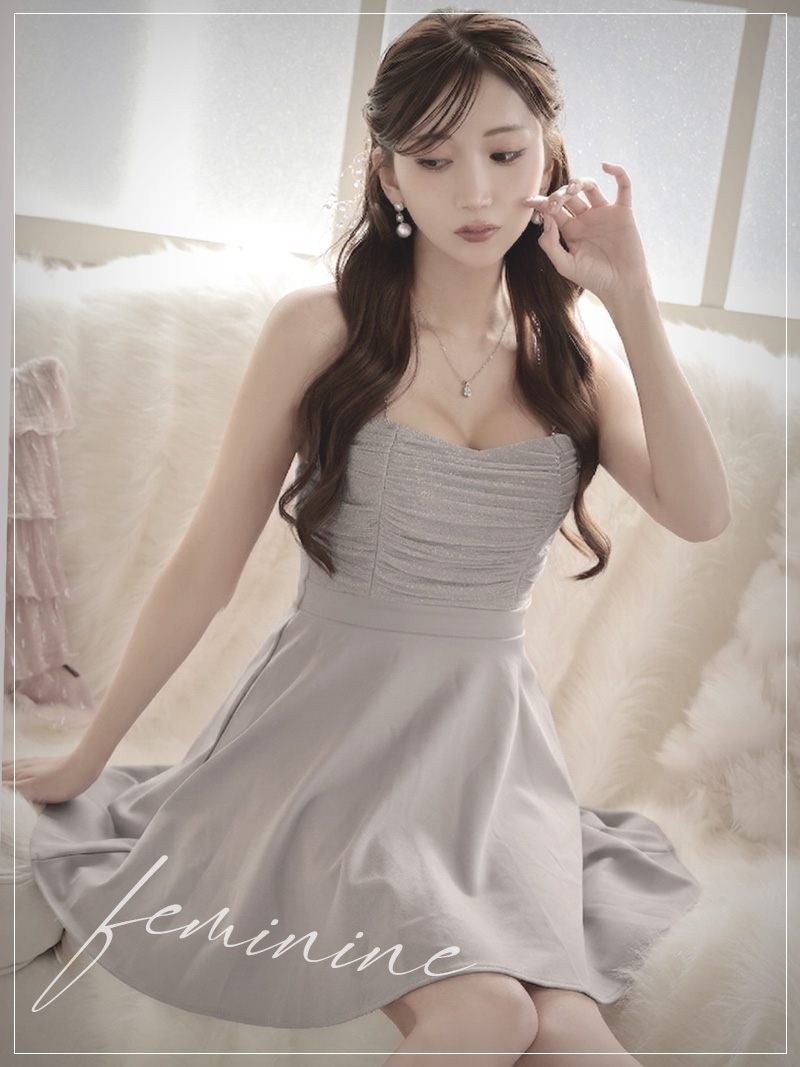 あざとい可愛さで視線を独占する、キラキラ輝くドール風フレアドレス。 先行予約割¥6980→¥6630!※一部予約販売※きらめくラメ入り素材とラインストーンストラップがキュートなドール風フレアドレス 【Ryuyu】(S/M/L/XL(2L))(ホワイト/ピンク/グレー)