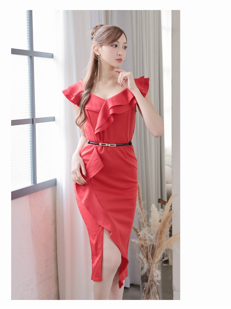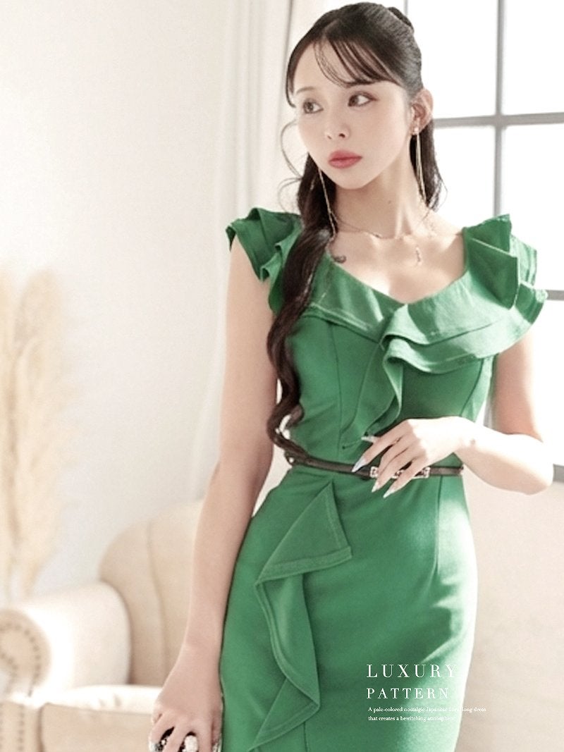 圧倒的な華やかさを放つ二重フリルで魅せる、韓国styleの極上スレンダーライン。 華やかな二重フリルが目を惹く韓国styleの大人スレンダーワンピース KANO 着用 キャバワンピース【DaysPiece】(S/M/L/XL(2L)/XXL(3L))(ホワイト/グリーン/ブラック/パープル/レッド)
