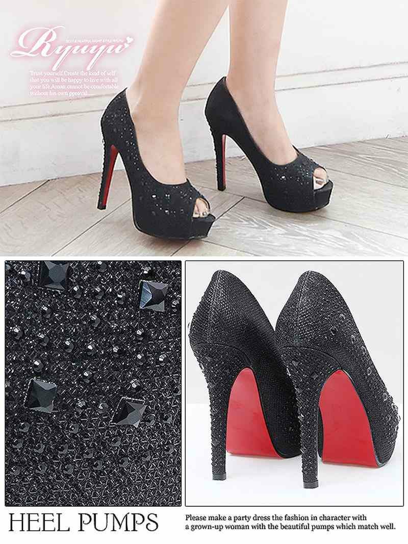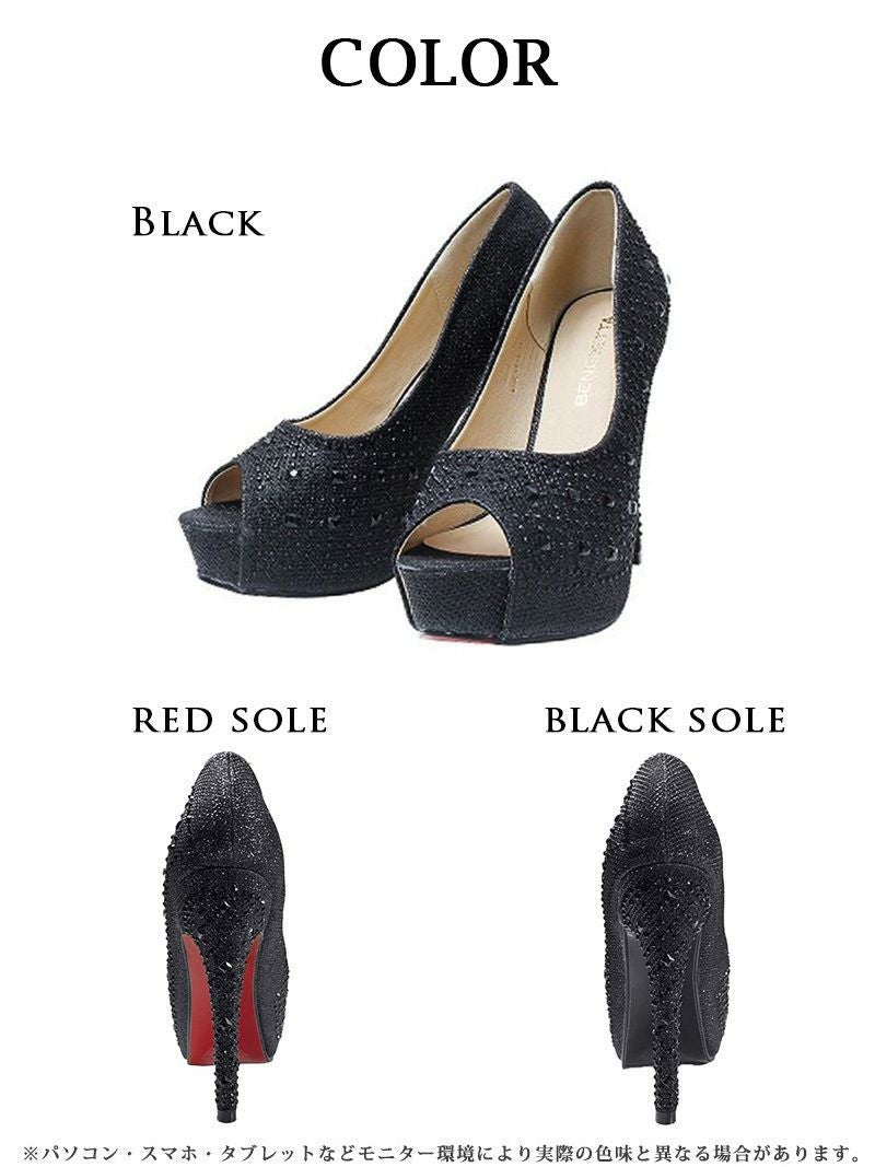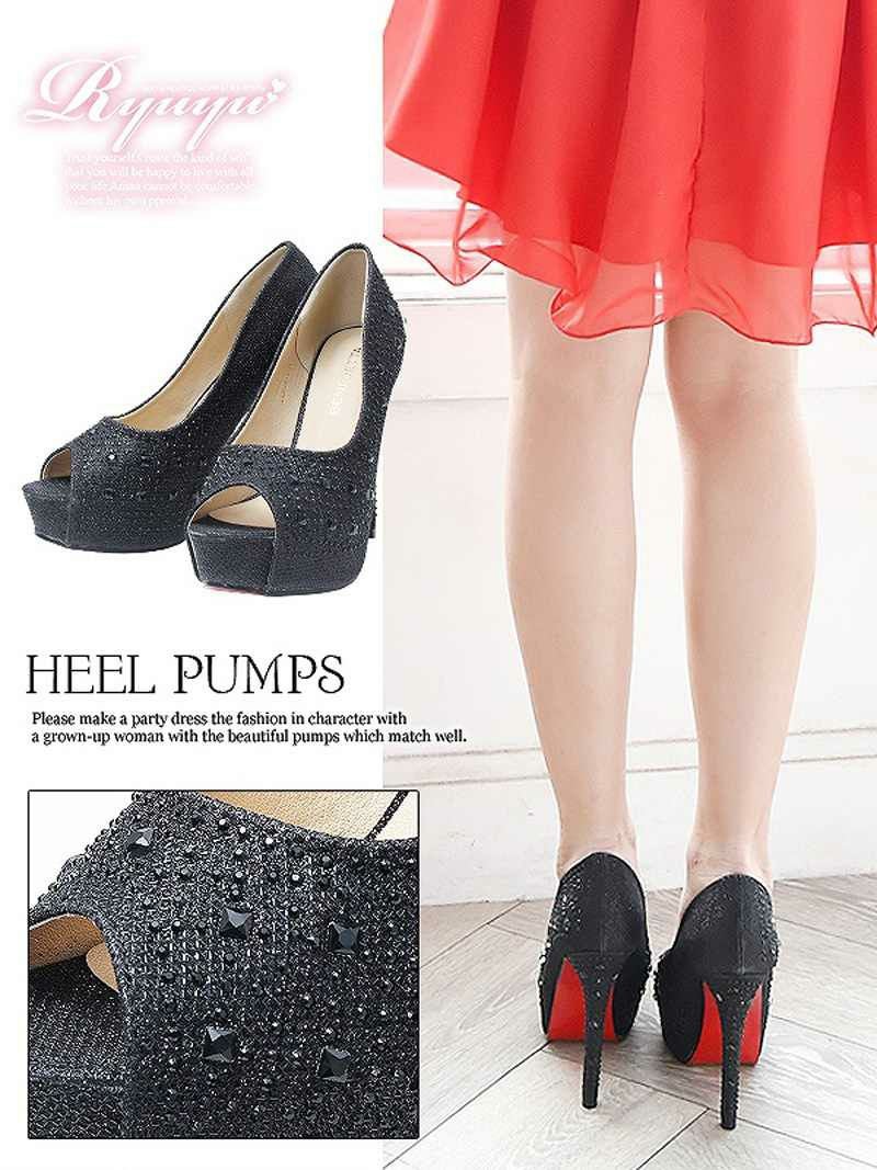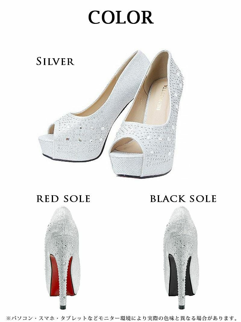 4. 美ラメ入ジュエリーオープントゥヒールキャバパンプス【Ryuyu】12.0cmヒール 美脚キャバクラパンプス(S/M/L/XL)(ブラック(赤ソール)/シルバー(赤ソール)/ブラック(黒ソール)/シルバー(黒ソール))