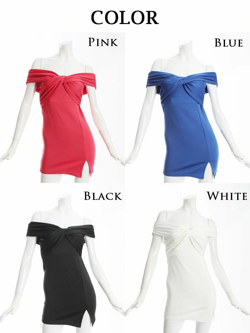 4. シンプル無地×オフショルタイトミニドレス【RyuyuChick】(M)(ブラック/ピンク/ホワイト/ブルー)