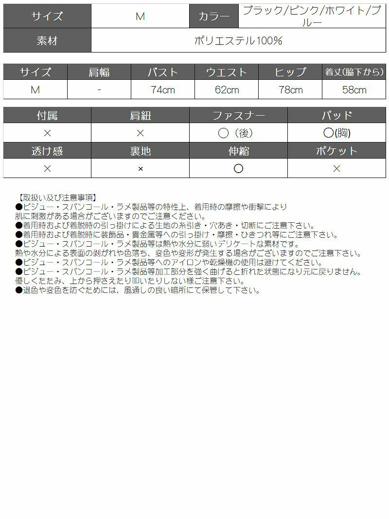 ◆ビジュー・スパンコール・ラメ製品等は過度な摩擦や洗濯によって脱落しやすくなる場合がございます。