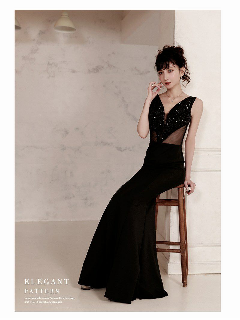マーメイドシルエットがスタイルアップ効果を発揮し、エレガントな印象を与えます。