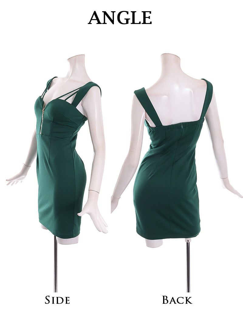 6. スーパーSALE¥7980→¥7333! ジップデザイン谷間魅せミニ丈タイトキャバドレス【Belsia】(XS/S/M/L)(グリーン/グレー)