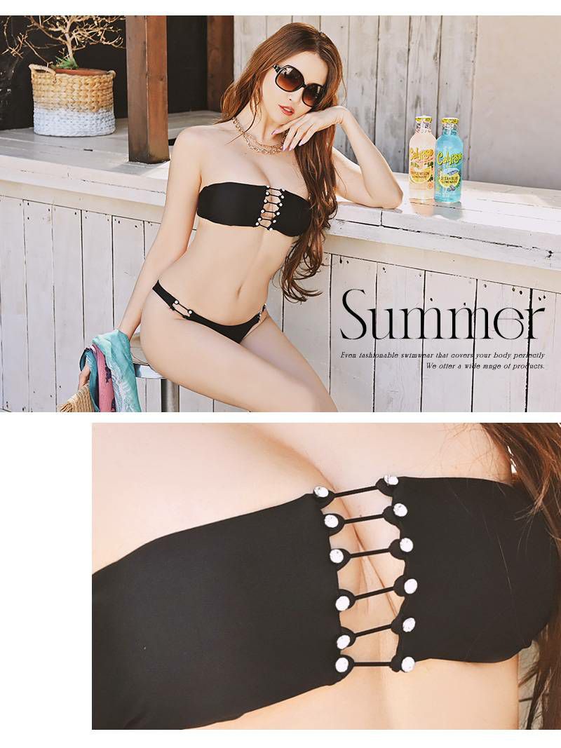 フロント編み上げがセクシー! 水着 フロントスピンドルバンドゥビキニ レディース水着かなへぇ 着用【Ryuyu】(M)(ブラック)
