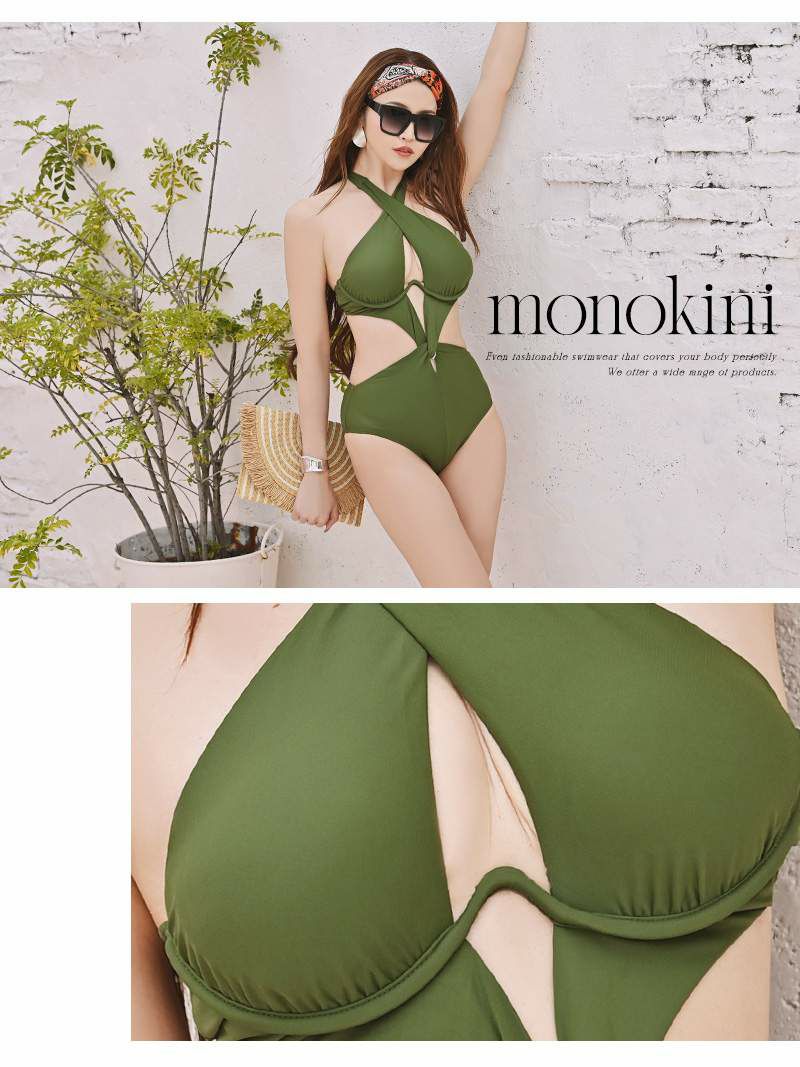 インポートセクシーデザイン! 水着 谷間魅せホルターネック2wayレディース水着 かずへー ENA着用【Ryuyu】(S/M)(ブラック/カーキ)