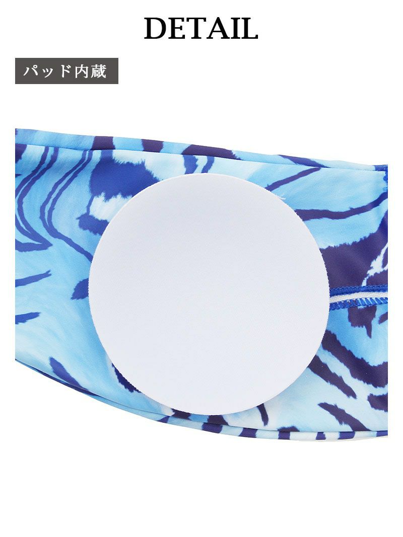 セクシーな海外セレブ風! スーパーSALE¥4680→¥4211! 水着 アニマル柄パレオ付きインポート風レディース水着3点セット【Ryuyu】(S-M)(グリーン/ブルー)