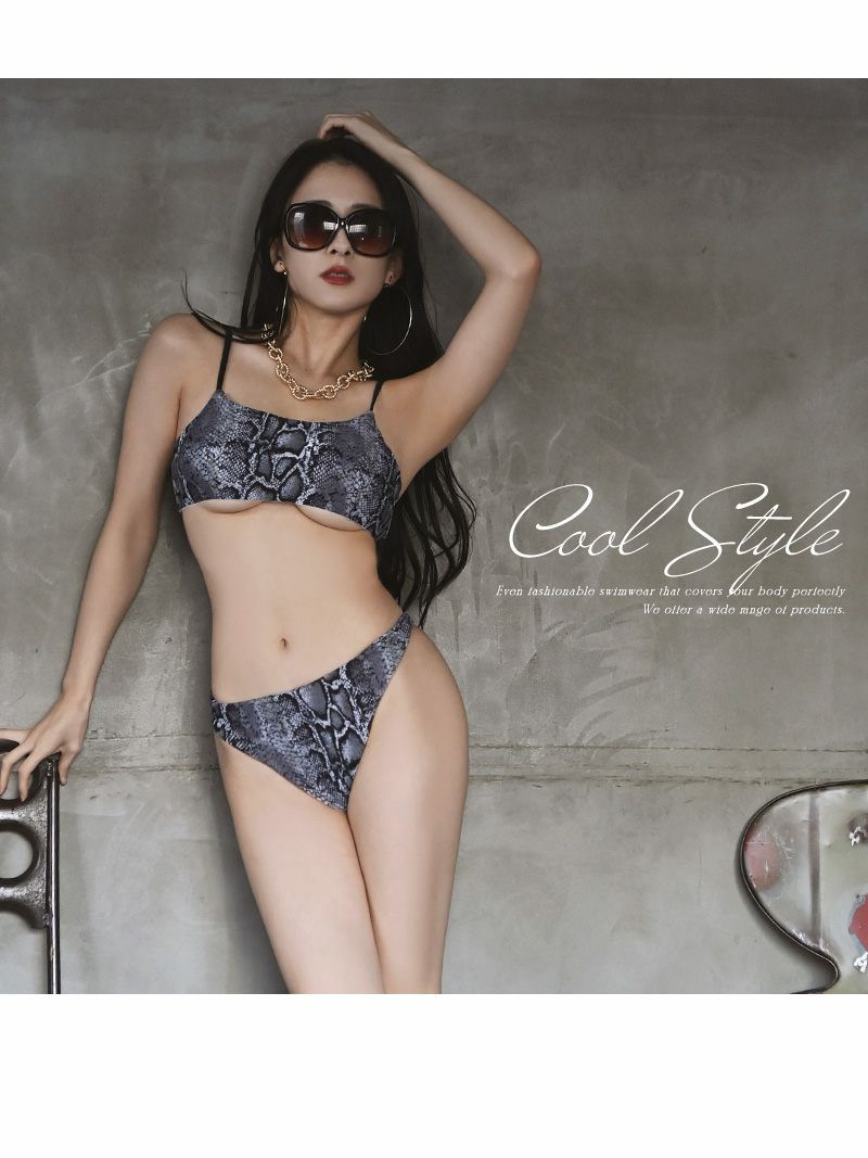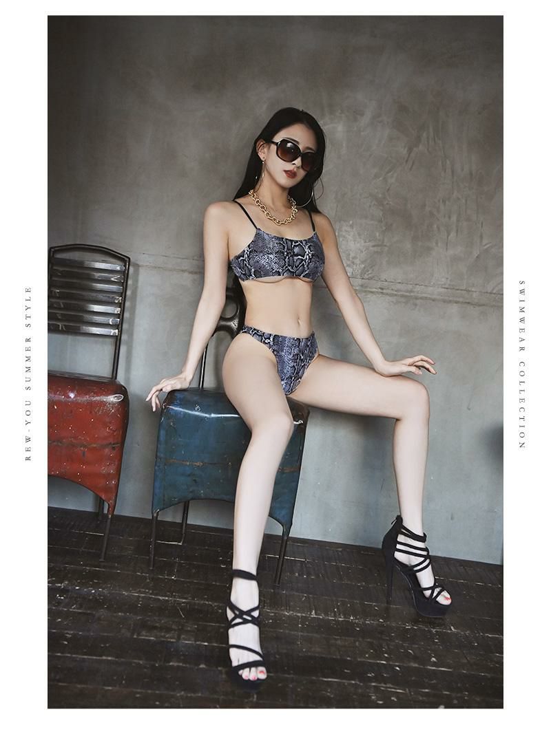 大胆でセクシーなパイソン柄水着 水着 パイソン柄キャミデザインキャバ水着 SNS映え かなへぇ 着用【Ryuyu】(S/M)(ブラウン/グレー)