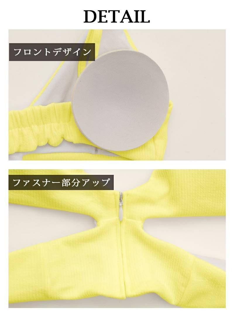 リブ素材で着心地◎ 水着 フロントジップインポート風ビキニ かずへぇ KAREN 着用【Ryuyu】レディースみずぎ(M)(ブラック/イエロー)
