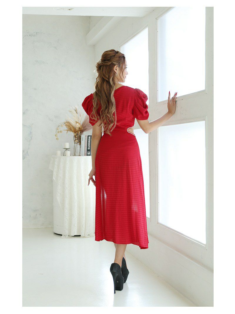 4. アシンメトリーデザインカッティング半袖ロングドレス りおん 着用 キャバドレス【RyuyuChick】(S/M/L/XL)(ブラック/レッド)