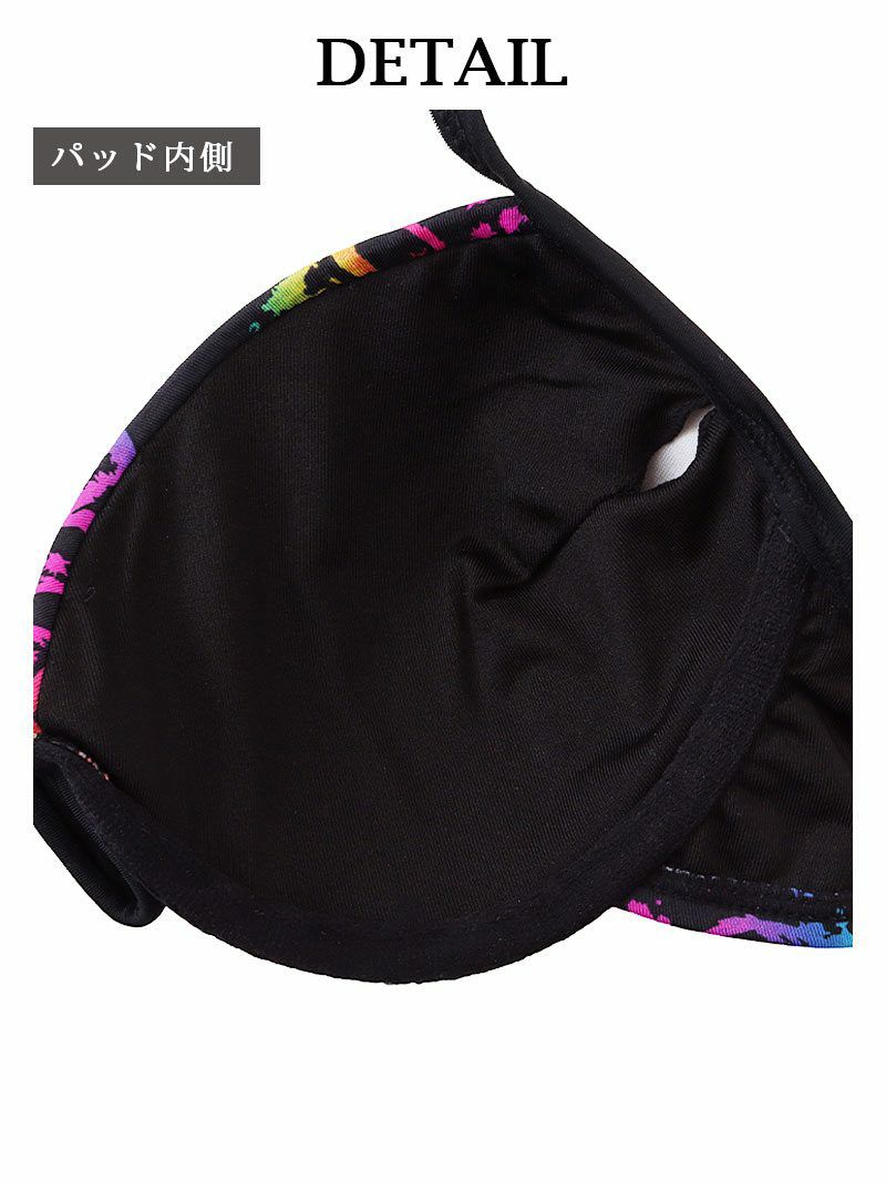 ギャル感満載の派手柄ビキニ! スーパーSALE¥4680→¥4211! 水着 ピースマーク虹色ホルターネックビキニ かなへぇ 着用レディース水着【Ryuyu】(S/M)(ブラック)