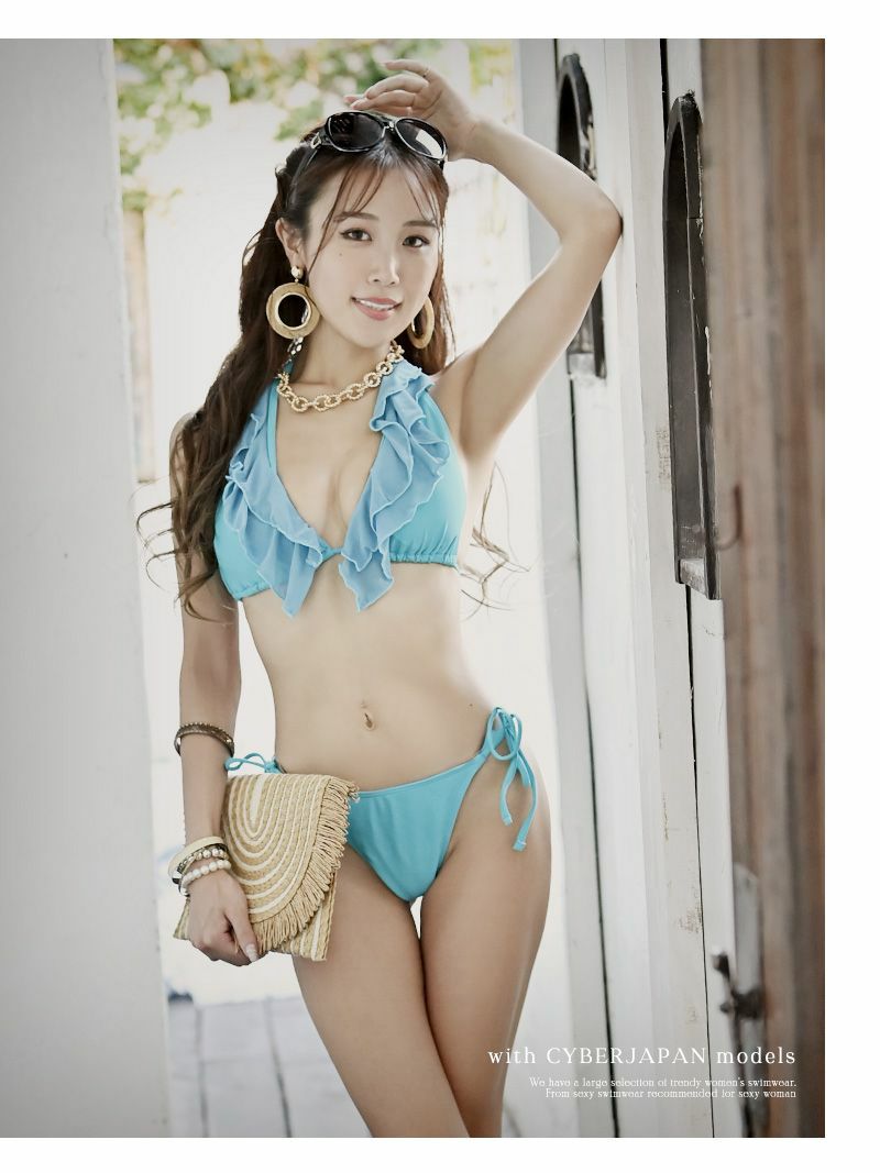 デザインはシンプルなホルターネック水着だからこそ、より一層フリルデザインが生かされるインポート水着です。
