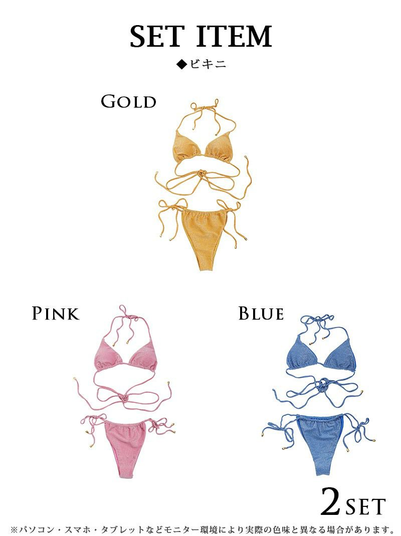 6. 水着 ホルターネックキラキラ海外セレブ風レディース水着【Ryuyu】(フリーサイズ)(ピンク/ブルー/ゴールド)