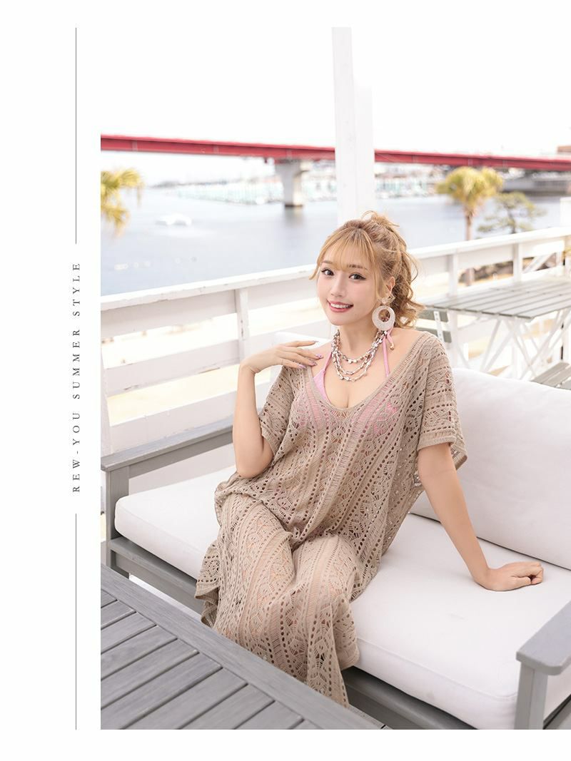 ちょっぴり感じる大人の色気で夏もキャバカワ! 水着 長めデザインメッシュワンカラージレ【Ryuyu】(フリーサイズ)(ベージュ/ブラック/ホワイト)