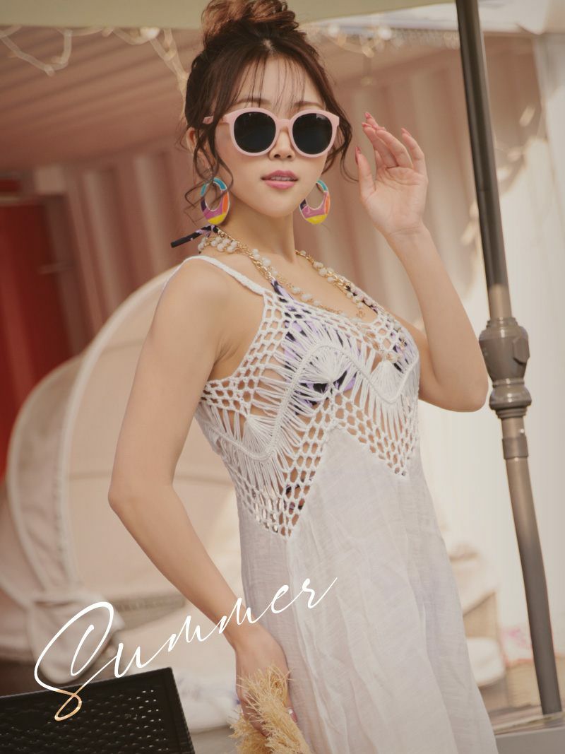 モードに着こなすロングジレ! 水着 ウエストカットかぎ編みロングジレ【Ryuyu】(フリーサイズ)(オレンジ/グリーン/ホワイト/ブラック/ベージュ)