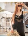 インポートデザインでセレブ感満載 水着 海外セレブ風ジレかぎ編みフリンジワンピース【Ryuyu】(フリーサイズ)(ブラック/ベージュ)