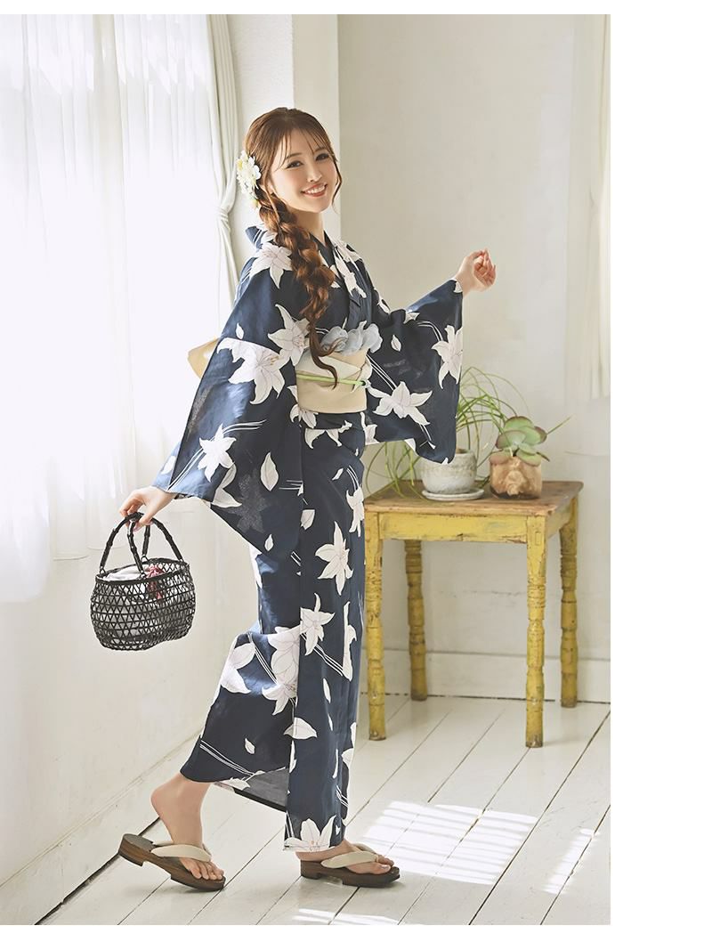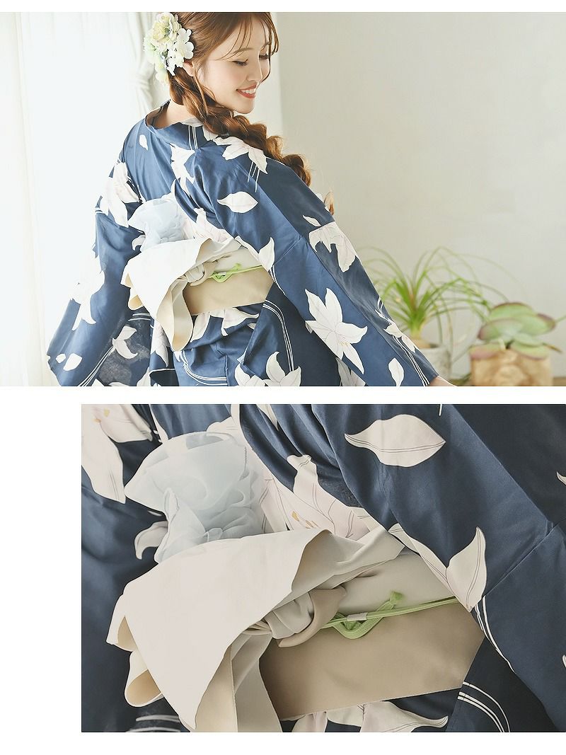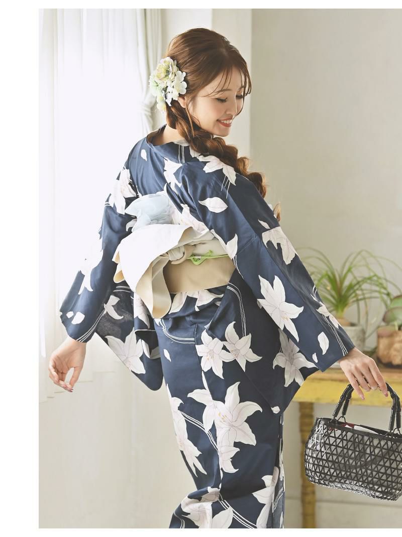 上品に着こなす夏ゆかた 浴衣 ネイビー地に可憐に咲く百合柄トールサイズレディース浴衣【Ryuyu】(2L/3L/4L/5L)(ネイビー)