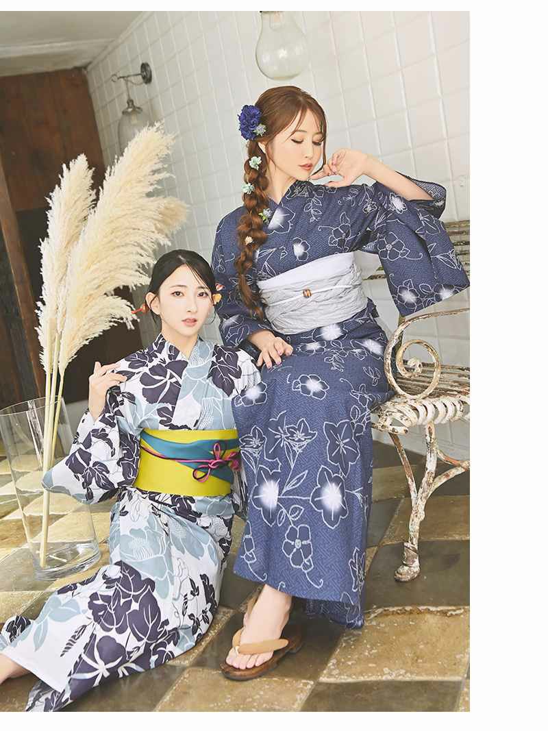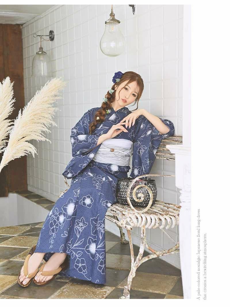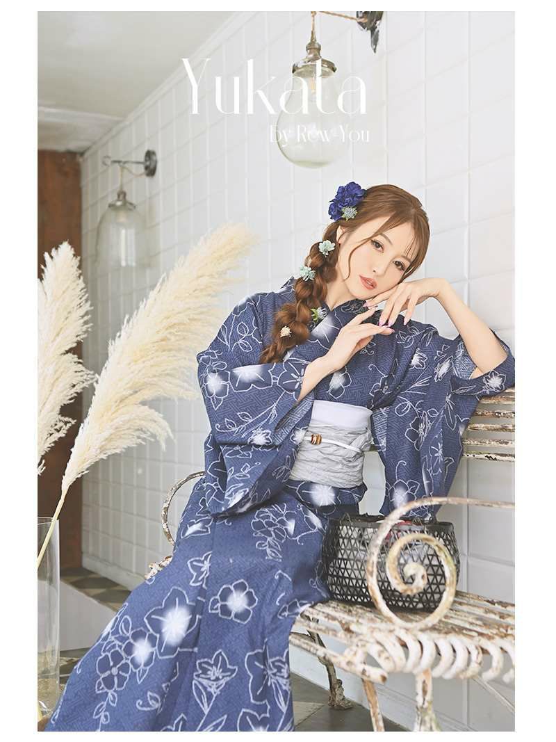 大人っぽく着こなせる上品ゆかた 浴衣 モダンレトロな椿柄ブルーセパレート浴衣【Ryuyu】(フリーサイズ)(ブルー)