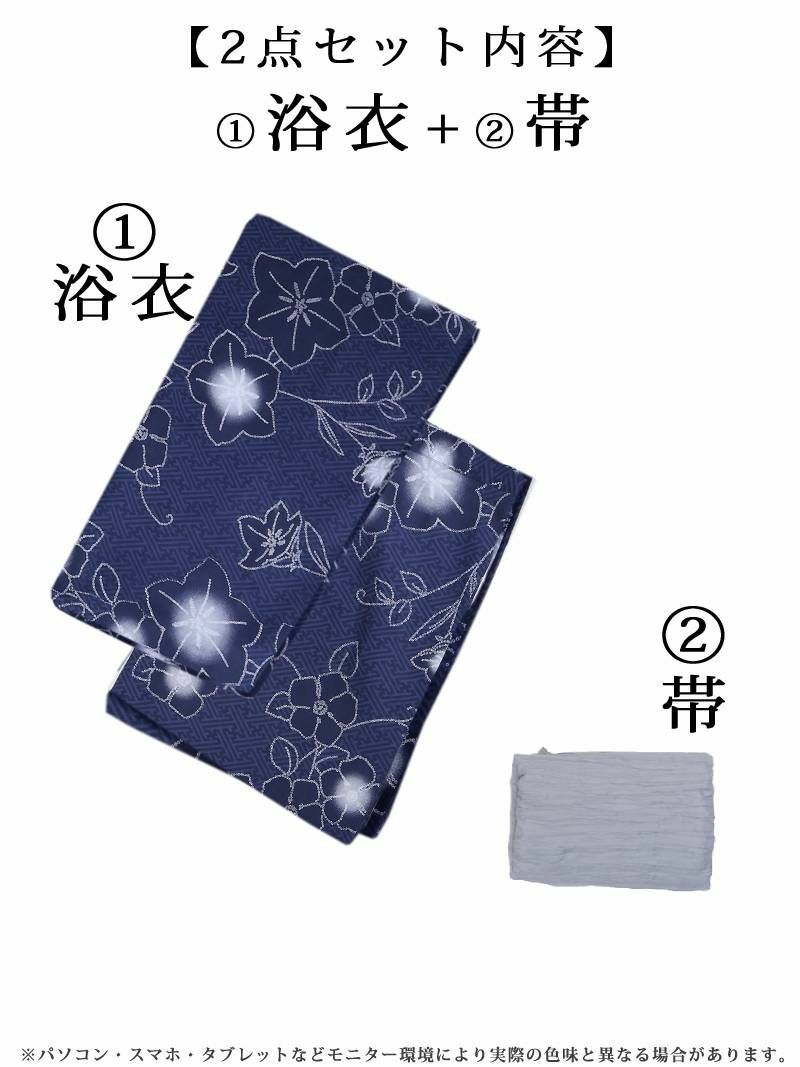 クールかつ上品な大人浴衣 浴衣 ブルーネイビー椿柄レディース浴衣2点セット【Ryuyu】(フリーサイズ)(ネイビー)