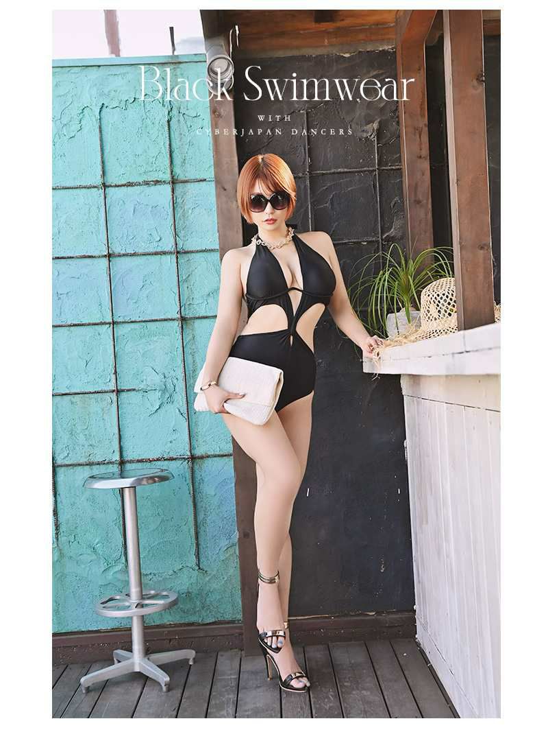 インポートセクシーデザイン! 水着 谷間魅せホルターネック2wayレディース水着 かずへー ENA着用【Ryuyu】(S/M)(ブラック/カーキ)