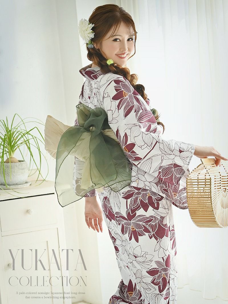 華やかで上品な夏の装いを楽しんで。 浴衣 赤椿フラワー柄 大人レディース浴衣2点セット【Ryuyu】(フリーサイズ)(レッド)