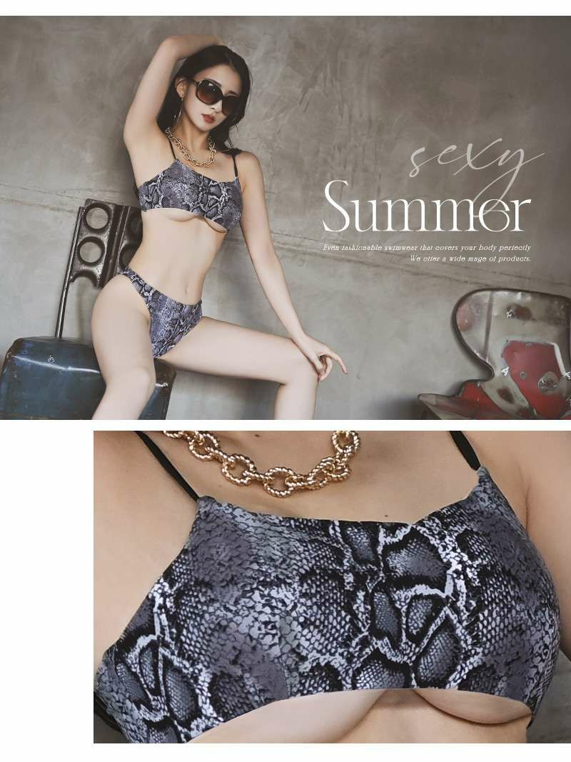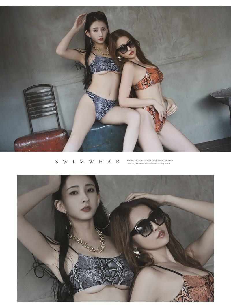 大胆でセクシーなパイソン柄水着 水着 パイソン柄キャミデザインキャバ水着 SNS映え かなへぇ 着用【Ryuyu】(S/M)(ブラウン/グレー)