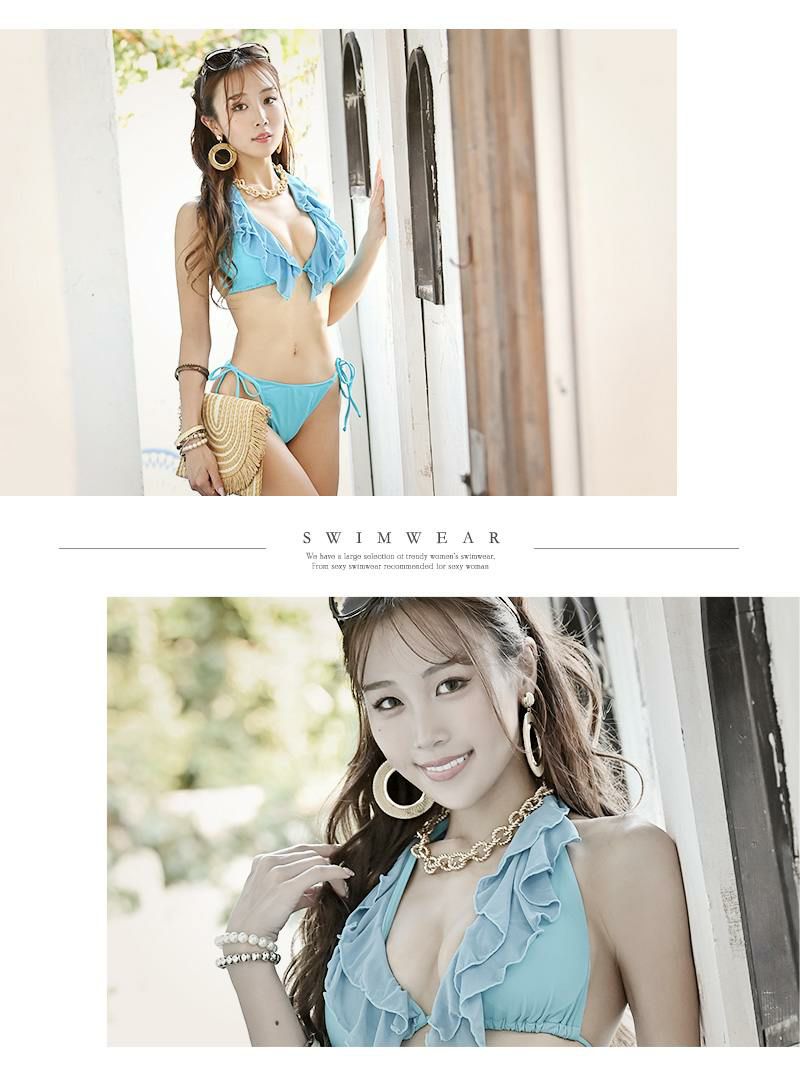 小胸キャバ嬢さんにもおすすめのキャバ水着★ スーパーSALE¥4380→¥3941! 水着 フリルデザインワンカラーホルターネックレディース水着【Ryuyu】(フリーサイズ)(ピンク/ブルー)
