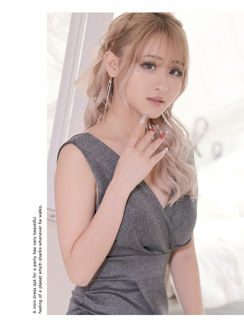 Vネックが魅了する 魅惑のデコルテえちえちアシンメトリーキャバミニドレス【RyuyuChick】(S/M/L/XL(2L)/XXL(3L))(ブルー/ダスティーピンク/ターコイズ/ブラック/ワイン/グレージュ/マスタード)