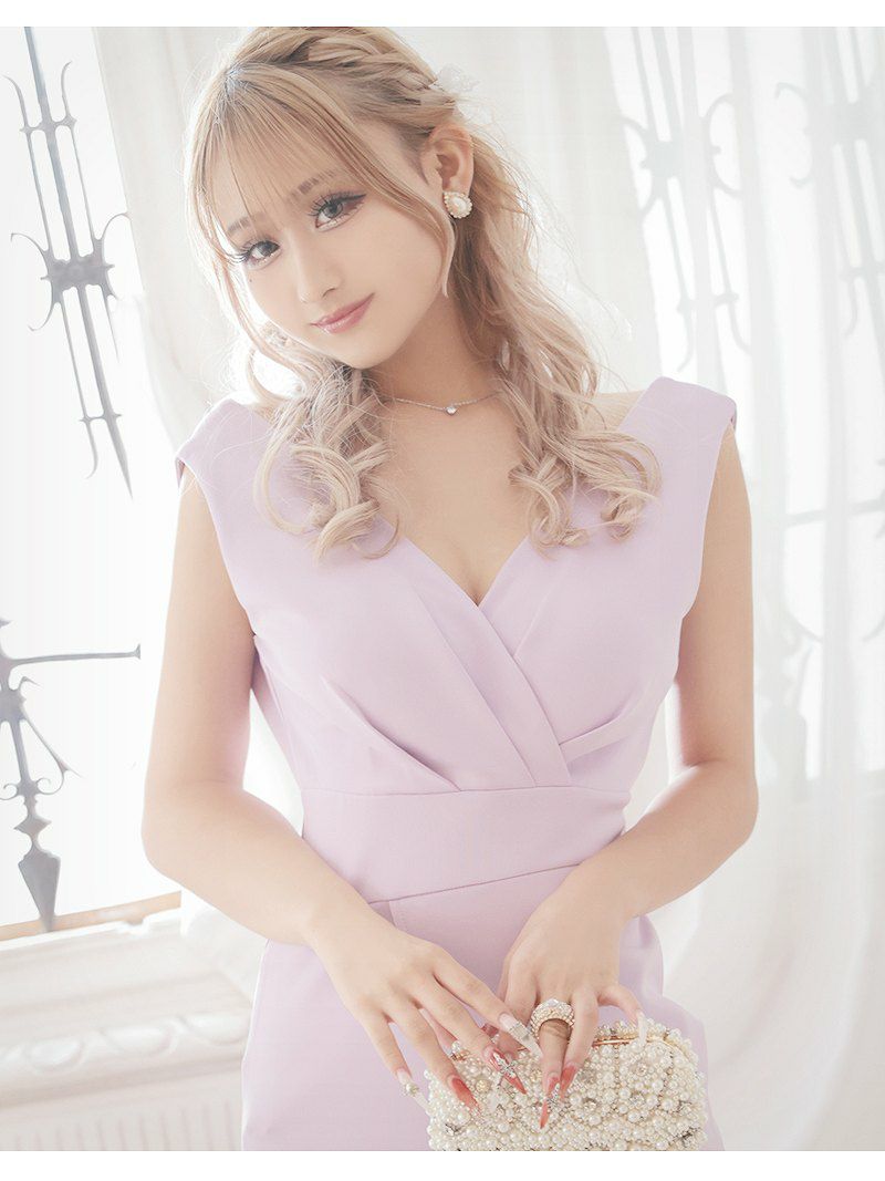 バスト魅せでお客様をドキっとさせる スーパーSALE¥3280→¥2333! カラバリ豊富!!大胆背中&谷間魅せワンカラーキャバドレス りおん 着用キャバワンピース【RyuyuChick】(M/L/XL)(ネイビー/グレー/ライトブルー/ターコイズ/ラベンダー)
