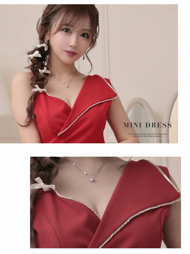 シンプルながらラインストーンが華やかさをプラスし、キャバクラに映える一着に。